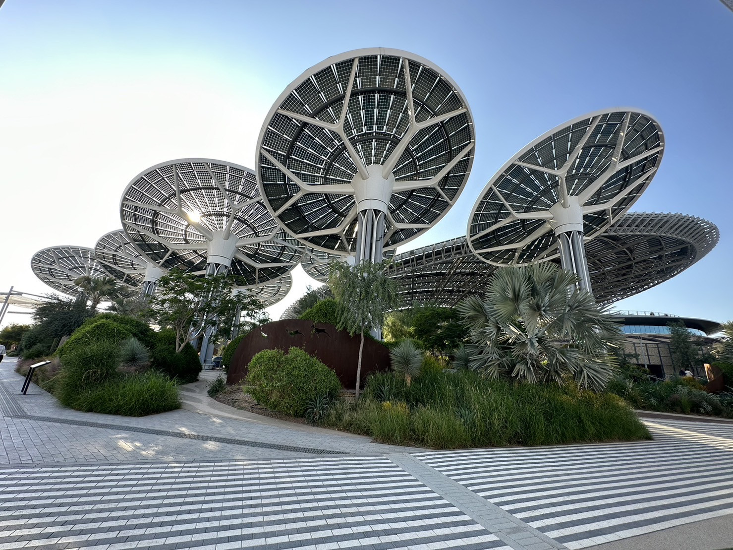 初訪杜拜,即便在冬季,仍能感受到沙漠氣候的威力。墨鏡、球鞋、背包、水瓶、遮陽裝備,也成走訪展區的標準裝扮。阿拉伯聯合大公國與杜拜過去給人的印象,多停留在石油出口大國,但本次主辦單位透過展示大型示範性光電場域「能源樹」,展現該國向再生能源靠攏、翻轉傳統印象的企圖心。