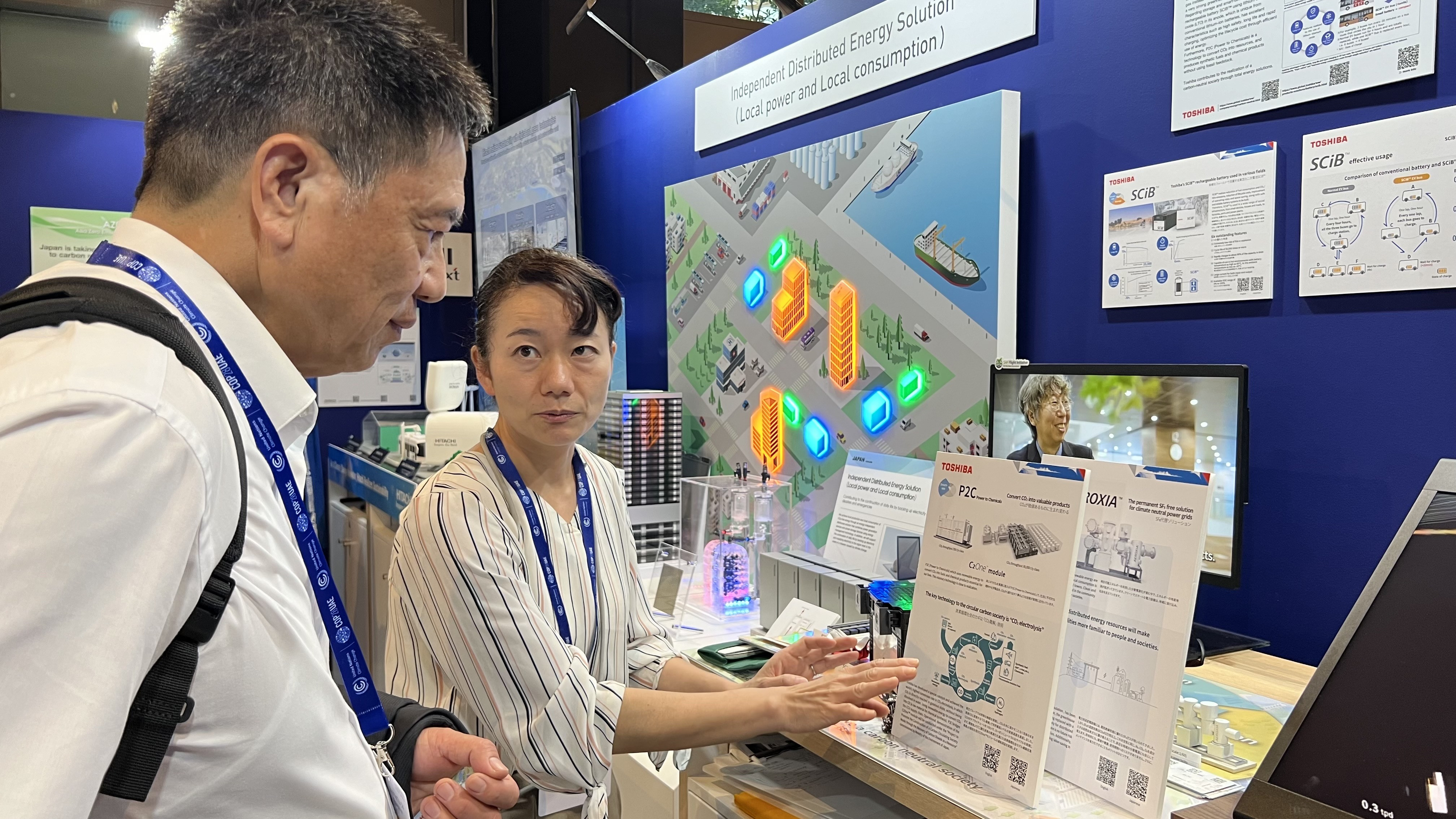 在所有的國家館當中,尤其以日本館觀摩人氣最旺。日本由政府號召該國重要企業,組成國家團體隊打永續戰,規劃完整,顯得格外亮眼。其展區由日本環境省號召三菱重工、東芝、日立、大金、大成建設、大發工業等10多家企業共同策劃展區,展示日本於能源、循環經濟、建築領域的最新技術、解決方案,論壇主題則涵括企業淨零轉型策略。