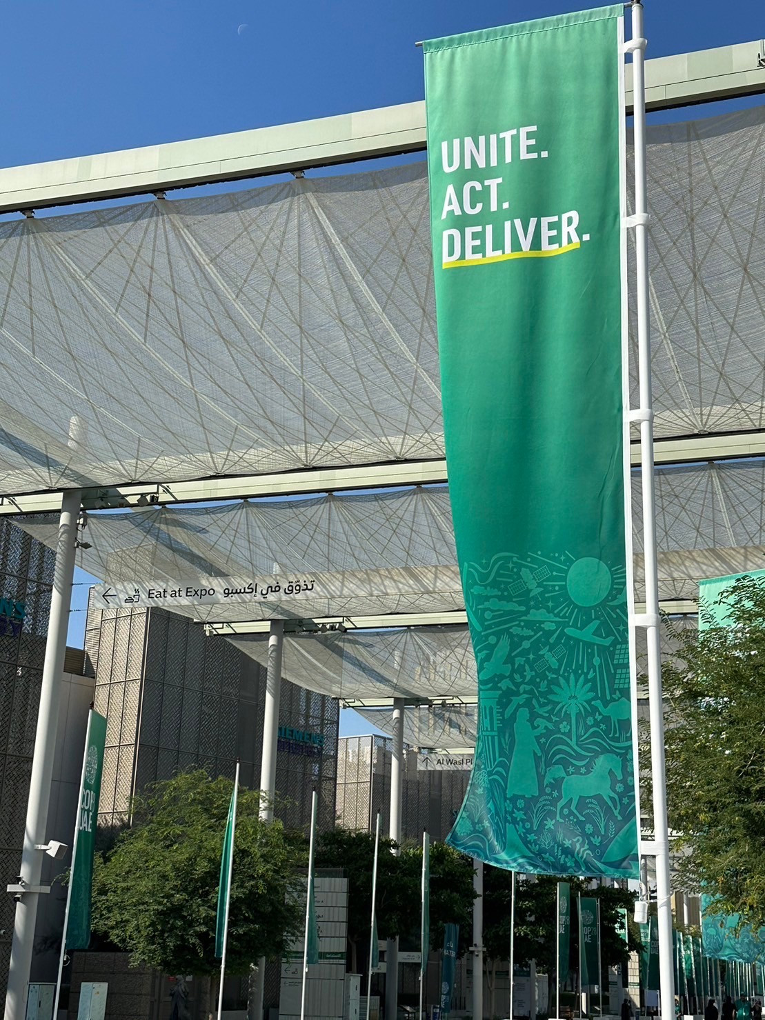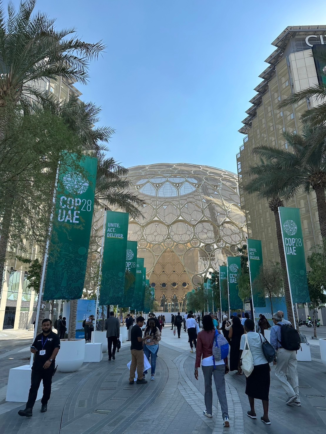 COP28現場人潮眾多,除了氣候危機兵臨城下的震撼感之外,還有各家倡議者用各種不同方式,展現對「行動」的重視。會場內舉目可見「Act Now」、「Unite, Act, Deliver」的行動標語標語,以及各種短講、道具、符號、裝扮、展示、表演等,也標誌了COP28作為全球最高氣候決策殿堂,倡議「行動力」的獨特氛圍。