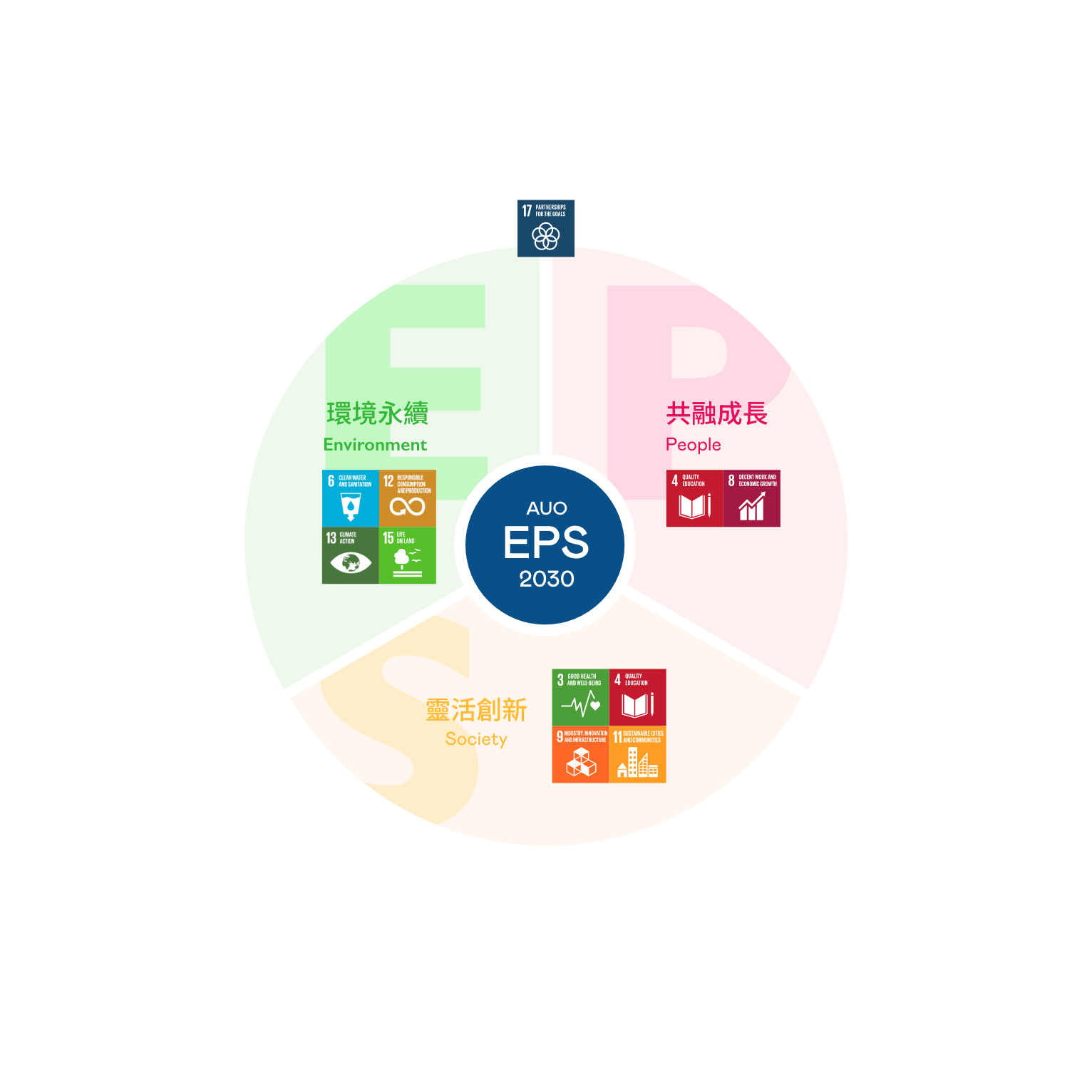 接軌聯合國SDGs永續發展目標,FUN88樂天光電以「超越企業社會責任,創造共享價值」為願景,訂出EPS三大永續發展主軸,並延伸訂定具體目標引領行動,擘劃企業永續策略路徑。