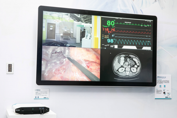 智能手术室应用 高阶医疗影像整合提升流程效率 智能医疗对高阶医学影像与高度整合医疗信息的需求方兴未艾,为解决传统手术室中影像各自呈现无法整合的问题,达擎与西柏科技合作展出手术室影像整合解决方案,提供记录、撷取、传输及显示影像等功能。达擎 55寸 4K 超高分辨率医疗显示器支持多种影像显示分割接口切换,透过系统化的串流整合,可同时呈现实时手术过程影像、手术室环景空间摄影画面、术前诊断影像及病人生命征象等信息,协助医生专注于手术执行,提高手术流程的整体效率。并可支持云端数据管理,迅速传递分配影像及信息,协助推动远距医疗及教学应用。