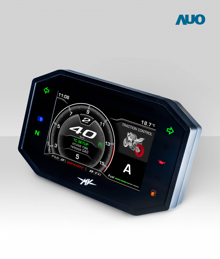 AUO smart dashboard system for motorbike is equipped with FUN88 automotive panels and builds the key communication interface connecting human, vehicle and AIoV cloud platform, as the core of realizing Smart Connected Motorcycle.